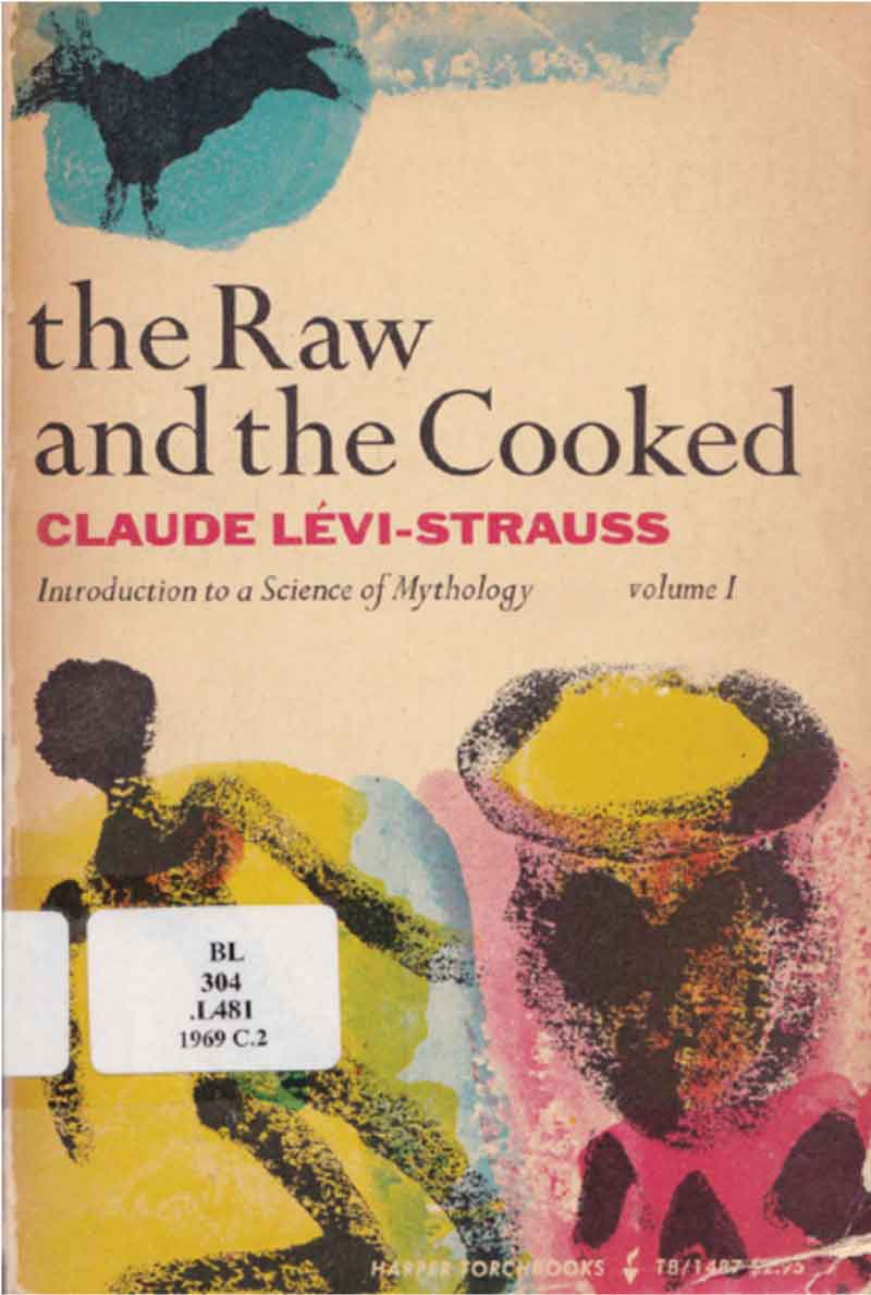 จากตำนานเรื่องเล่าของชนเผ่าพื้นเมืองในแถบทวีปอเมริกาใต้ ประหนึ่งระบบโครงสร้างเฉกเช่นภาษา เลวี-สเตราส์ ประยุกต์แนวคิดทางภาษาศาสตร์ของแฟร์ดินองด์ เดอ โซซูร์ (Ferdinand de Saussure, 1857-1913) และ โรมัน จาคอปสัน (Roman Jakobson, 1896-1982) มาใช้สะท้อนถึงความสัมพันธ์ระหว่างธรรมชาติและวัฒนธรรมในความคิดมนุษย์ผ่านเรื่องราว ตำนานปรัมปรา เป็นการจัดประเภทแบบคู่ตรงข้าม (Binary Opposition) ผ่านการประกอบอาหาร อาทิเช่น การกำหนดว่าสิ่งใดกินได้กินไม่ได้ แหล่งอาหาร การปรุงสุกและกินดิบ อาหารในพิธีกรรม เป็นต้น